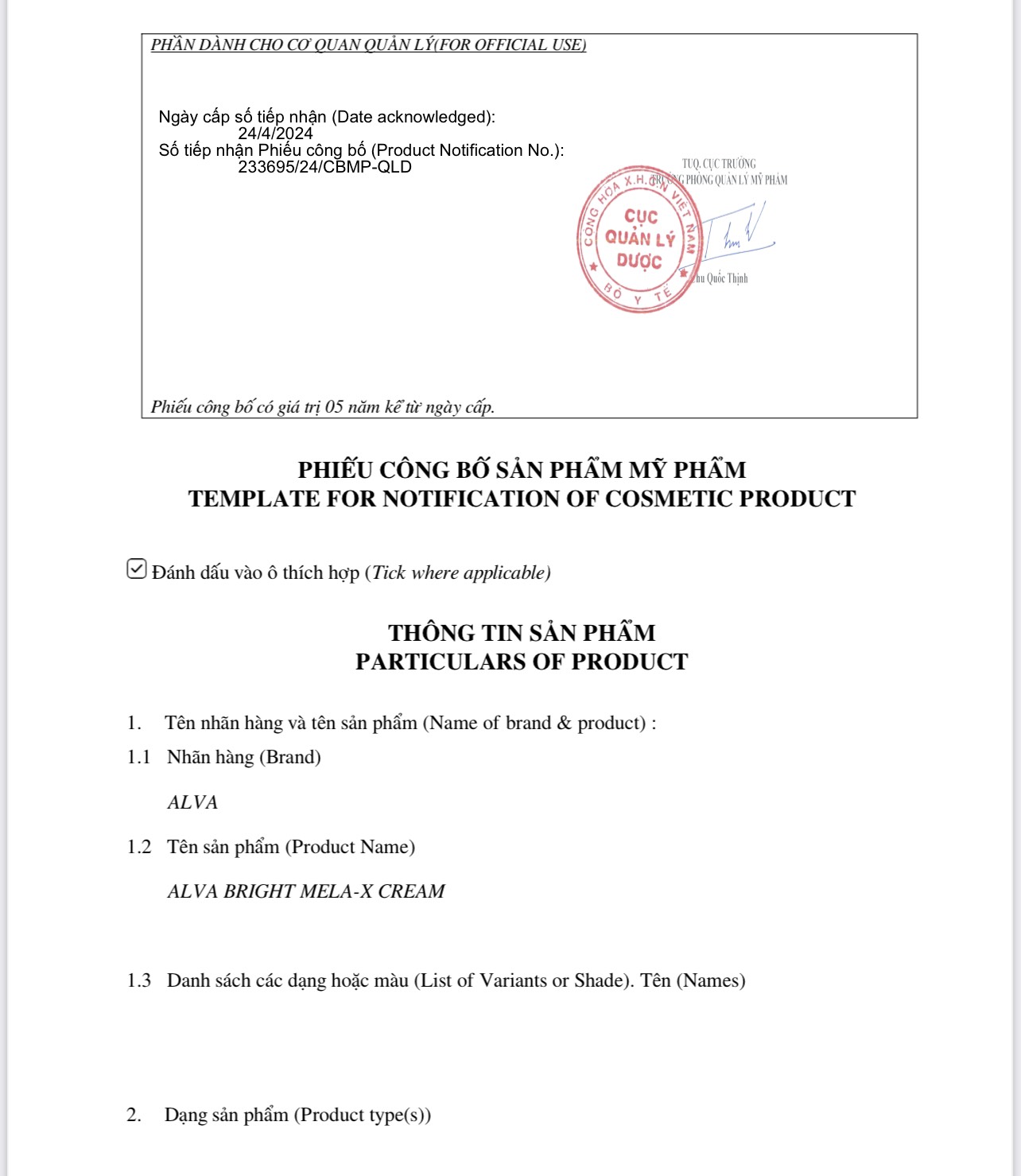 Sản phẩm được Bô Y Tế Cấp Phép và Được Phân Phối Trên Toàn Quốc