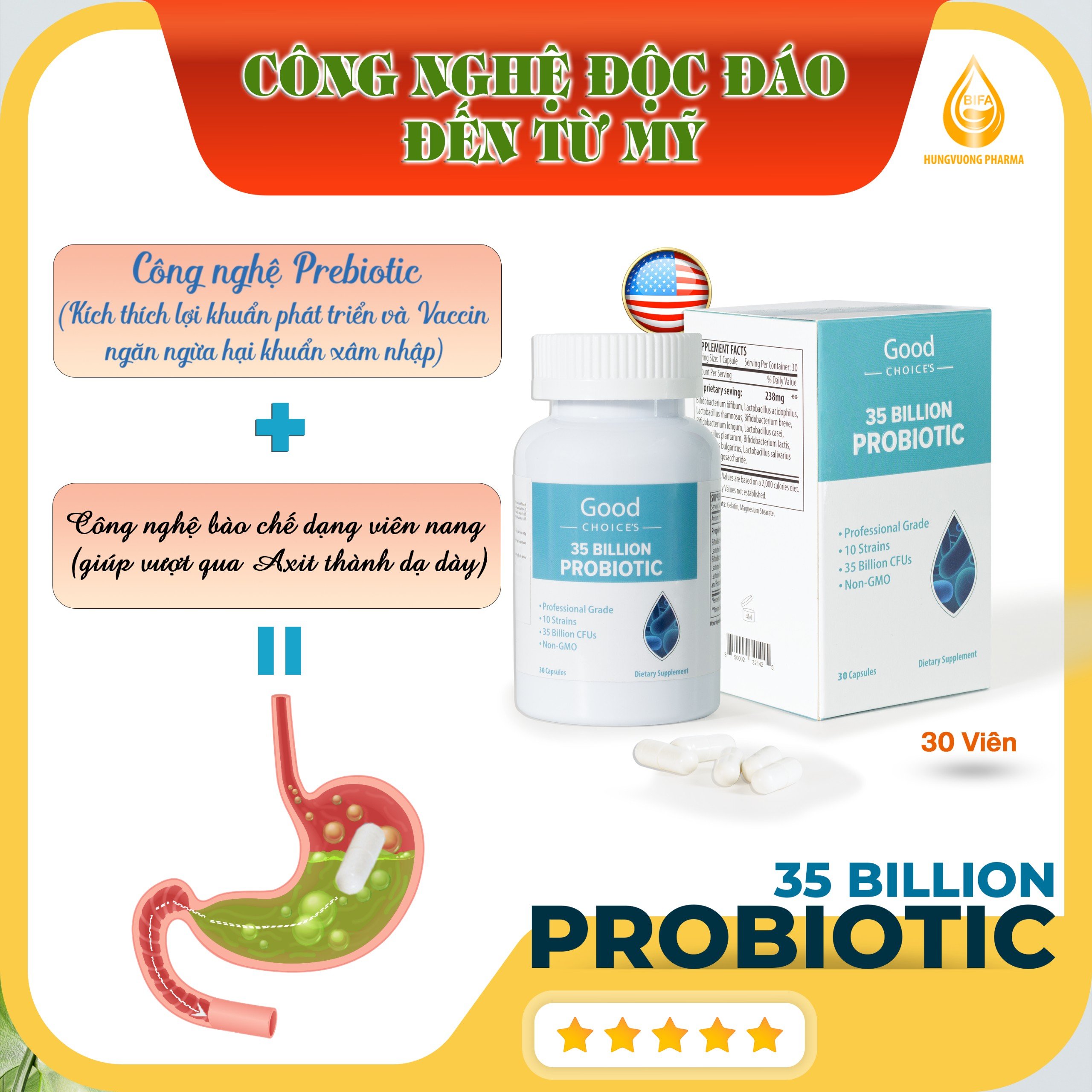 Men vi sinh Good Choice's 35 Billion Probiotic là sản phẩm được sản xuất bởi công ty American Health, Mỹ. Sản phẩm được nhập khẩu nguyên hộp về Việt Nam và được nhiều người tin dùng.