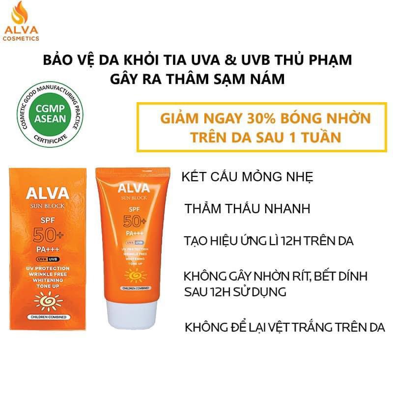 Nếu bạn muốn tìm sản phẩm kem chống nắng tốt thì hãy thử kem chống nắng Alva Sun Block SPF50+ PA+++ có xuất xứ từ Hàn Quốc và hiện đang được công ty nhập trực tiếp – phân phối trên toàn quốc! Liên hệ ngay để được tư vấn và đặt mua sản phẩm, bạn nhé!