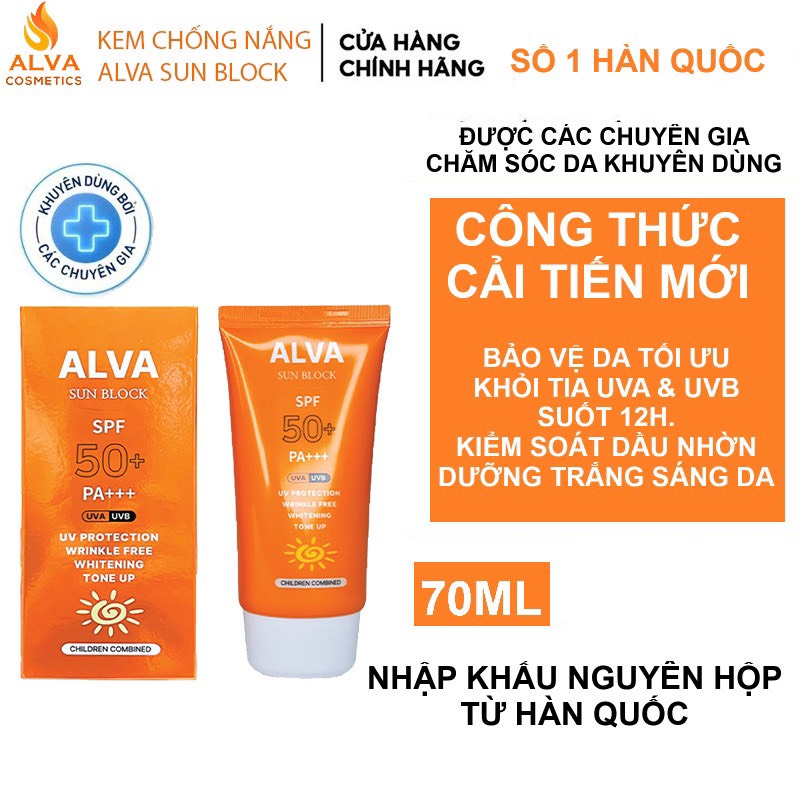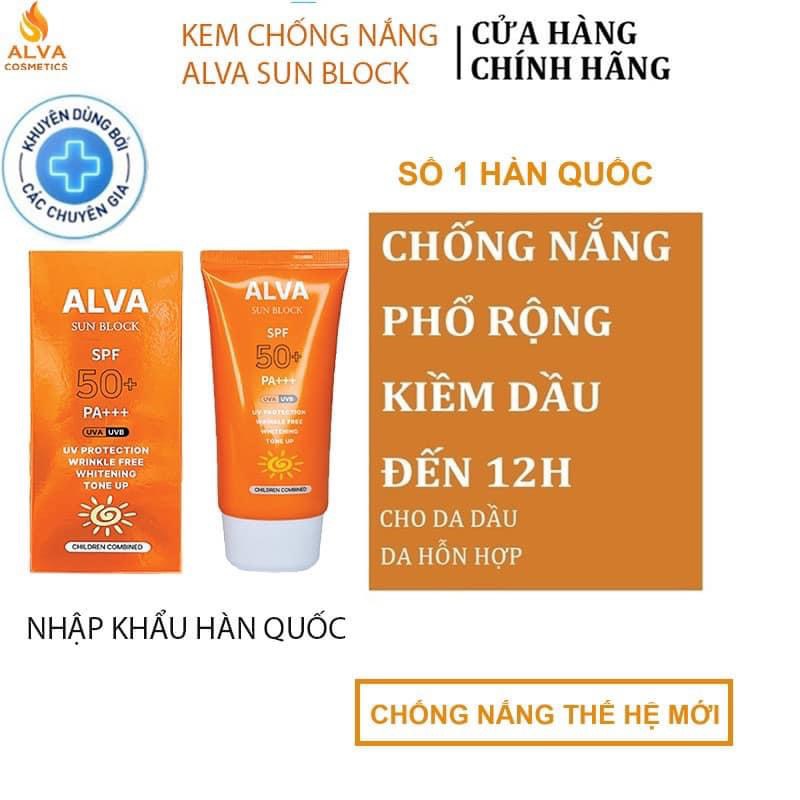 Kem chống nắng Alva Sun Block có chỉ số SPF lên tới 50, khả năng bảo vệ da tuyệt vời