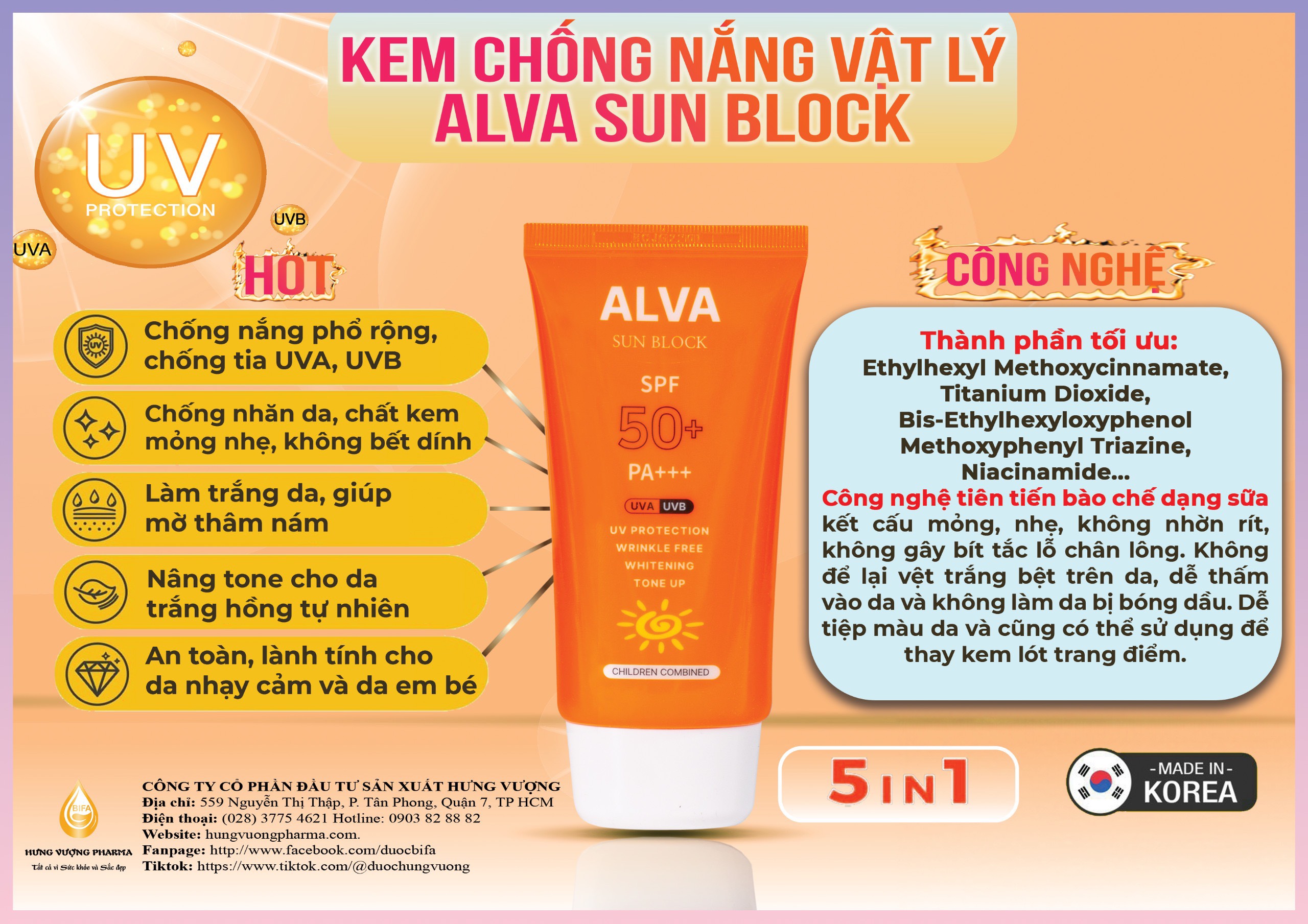 ALVA SUNBLOCK sự lựa chọn hoàn hảo để chống lại những tác hại từ tia UV hay ánh sáng xanh lên làn da, bảo vệ và nuôi dưỡng làn da mạnh khỏe